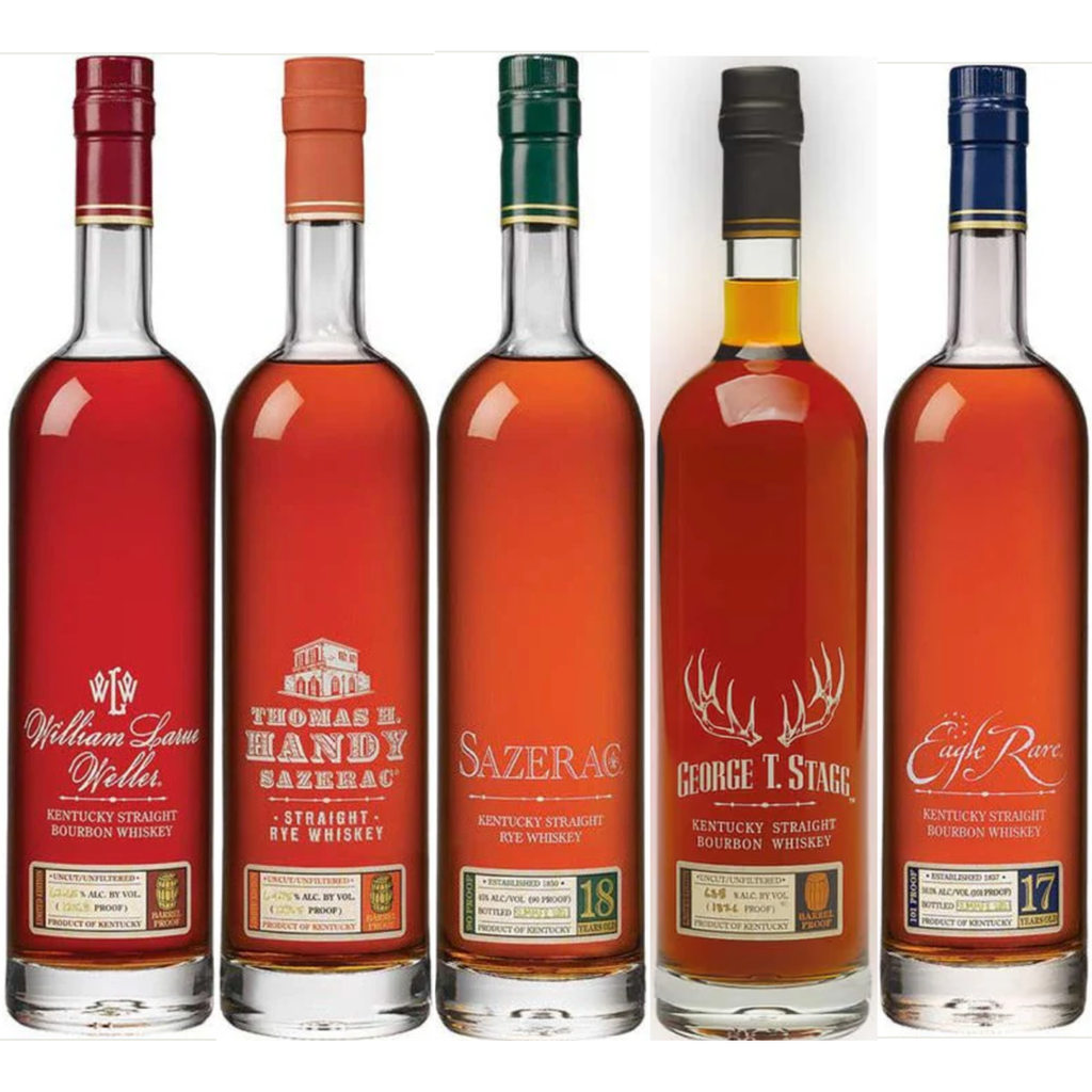 Are all bottles barrel-proof?Three of the five (George T. Stagg, William Larue Weller, Thomas H. Handy) are uncut and unfiltered barrel-proof expressions.