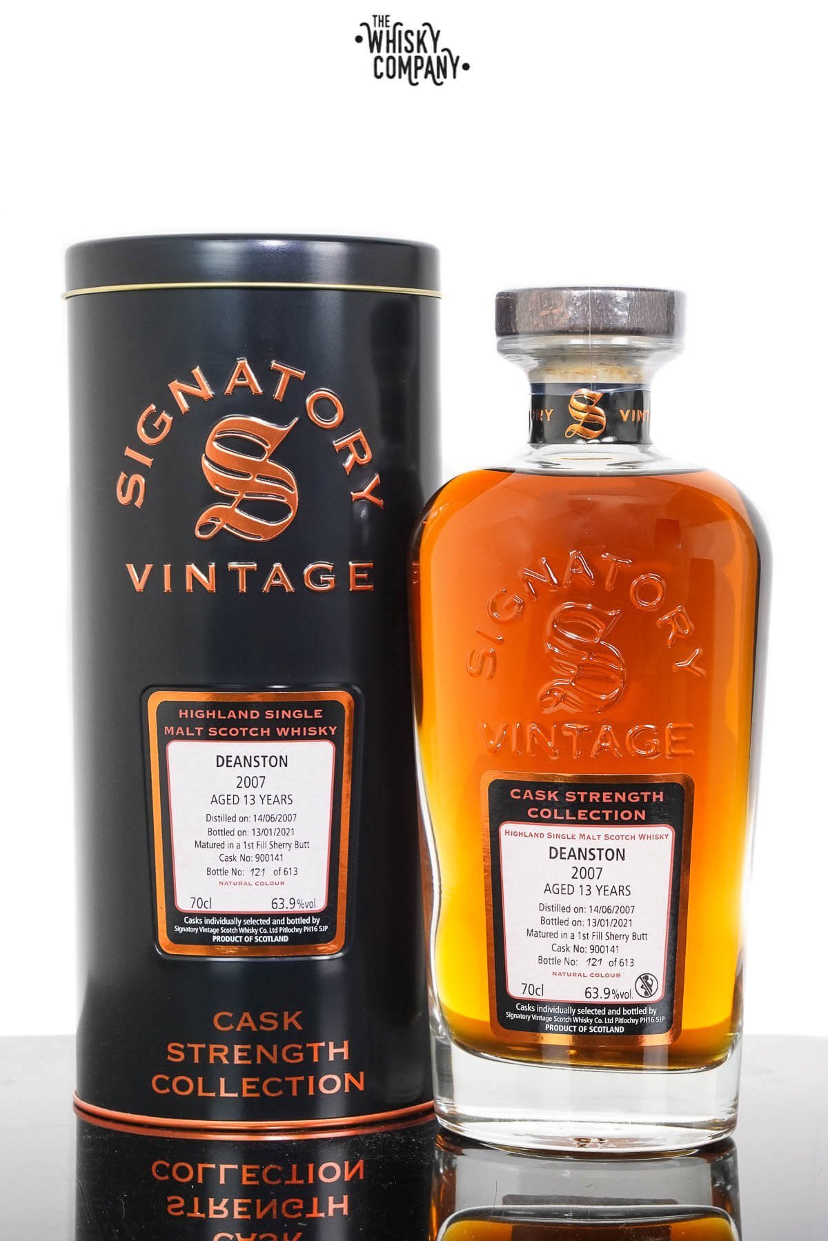 This single malt whisky was distilled in 2007 at the Deanston distillery on before being placed in single 1st Fill Sherry Butt and left to mature for 13 years. In 2021 it was bottled at 63.9% abv as part of the Signatory Vintage Cask Strength Collection. Only 613 bottles worldwide were produced of this fine liquid for us all to enjoy.
