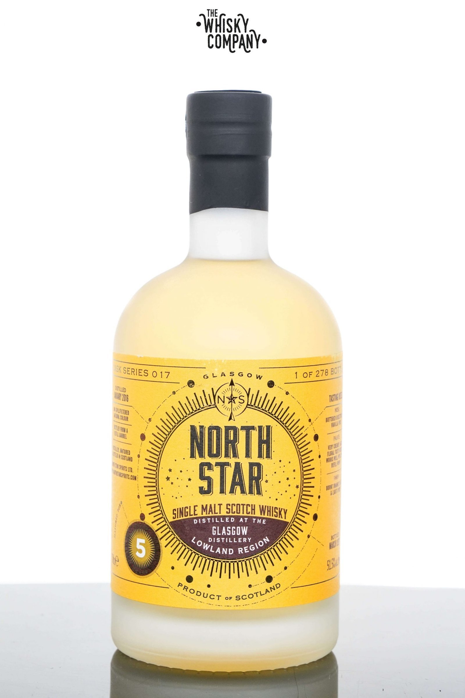 This single cask single malt whisky was distilled at the Glasgow distillery before being placed in a refill barrel and left to mature for 5 years. It was then bottled at 51.5% ABV in 2021. Part of the North Star Cask Series Number 014 with only 358 bottles produced for worldwide distribution.