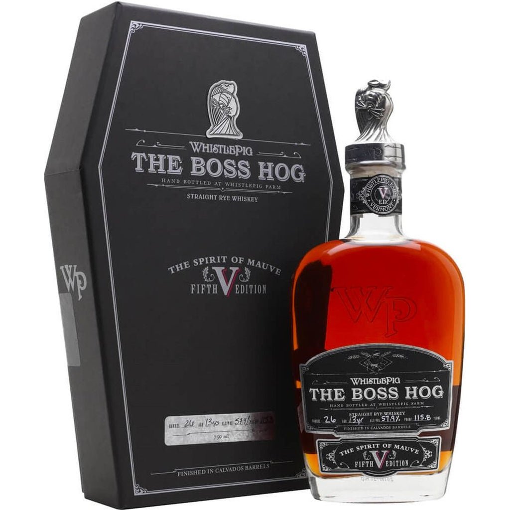 WhistlePig The Boss Hog V: The Spirit of Mauve Straight Rye Whiskey is a tribute to WhistlePig’s beloved pig mascot, Mauve, and a bold, one-of-a-kind expression in the Boss Hog series. This 5th edition is a straight rye whiskey finished in Calvados (French apple brandy) casks, creating a rich, fruit-forward profile that beautifully balances WhistlePig’s signature spice with orchard sweetness. Each bottle is bottled at barrel strength, non-chill filtered, and topped with a handcrafted pewter pig topper in Mauve’s honor.